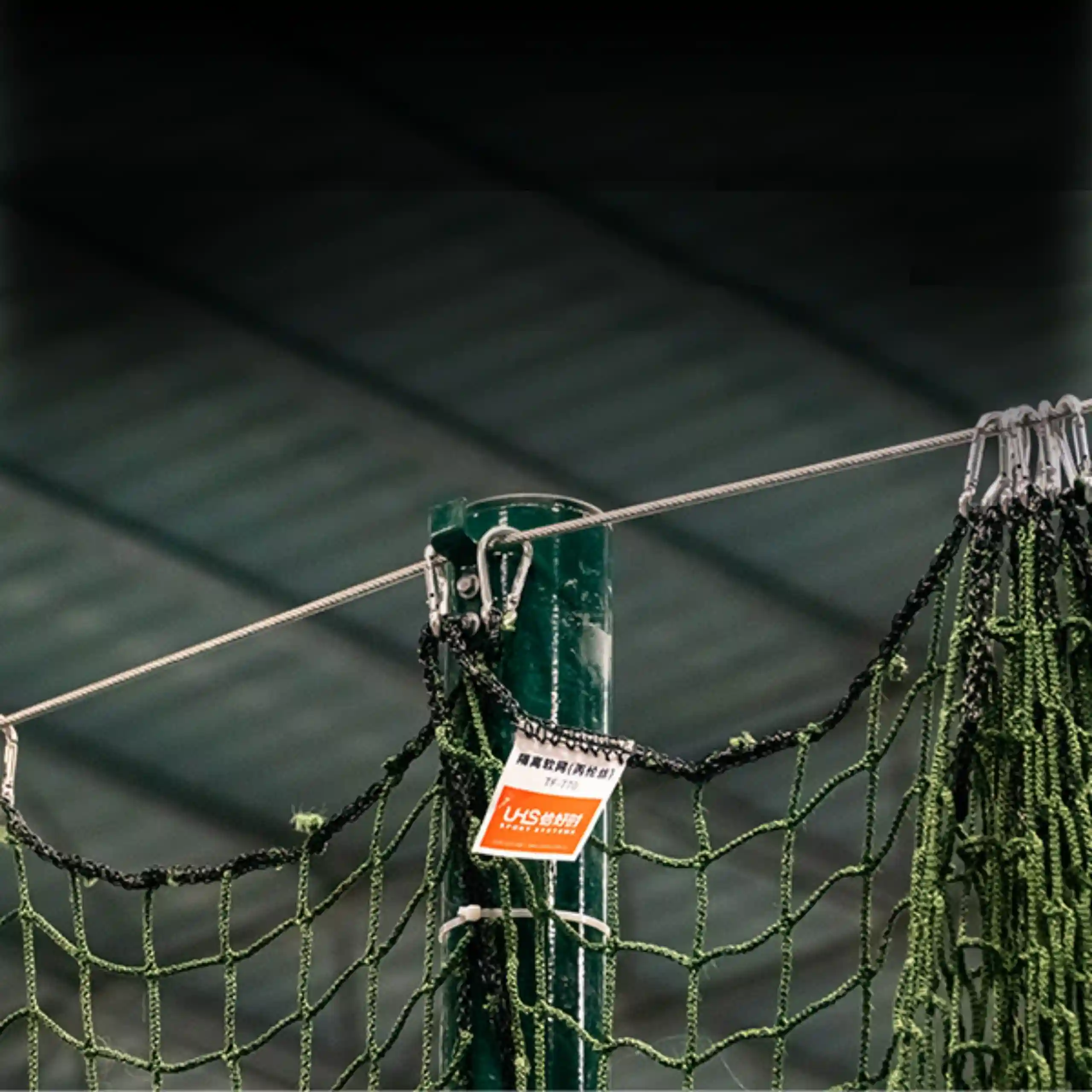 TF-770 Tennis Court Divider Net, dark green indoor divider net, polypropylene tennis court net, indoor tennis divider net, quick-dry tennis court net